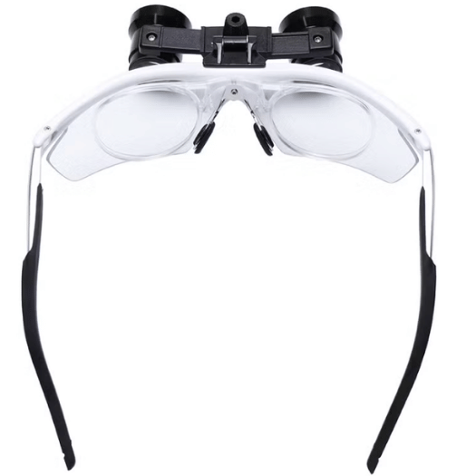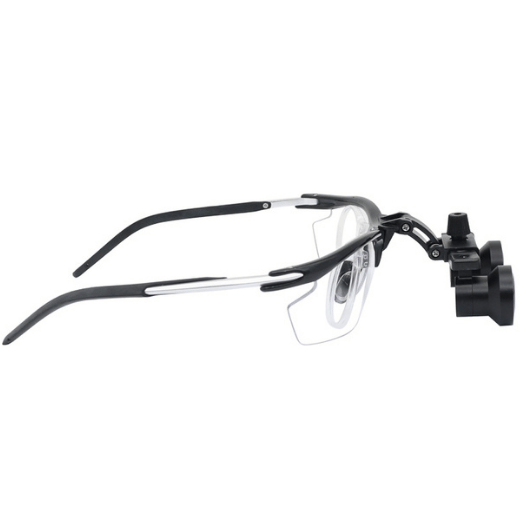 Aluminum loupes with an aluminum-magnesium alloy frame, equipped with internal lenses that adapt to different glasses according to the user's needs.